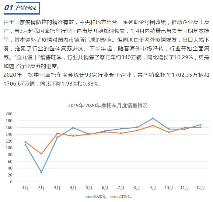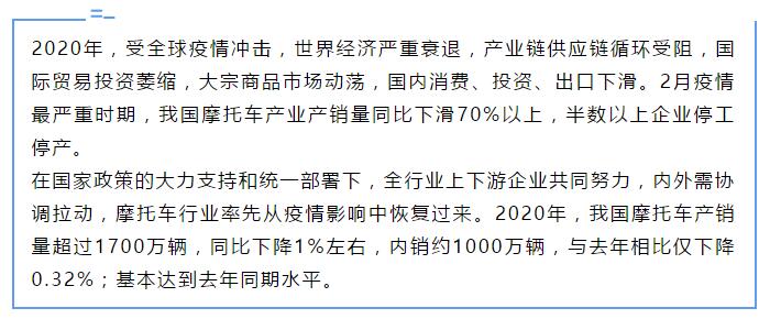 【概要描述】2020年我國(guó)摩托車產(chǎn)銷量超1700萬(wàn)輛,250ml以上產(chǎn)銷量約為20.08萬(wàn)輛,增長(zhǎng)13.32%